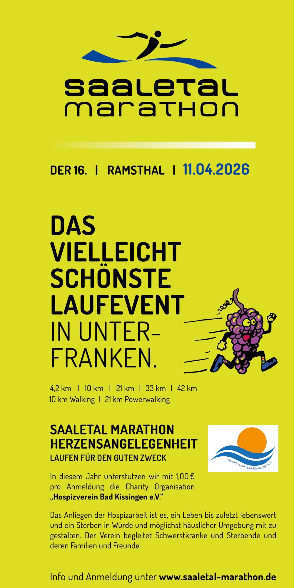 Melde dich jetzt zum 16. Saaletal Marathon am 11.04.2026 an und sei ein Teil des vielleicht schönsten Laufevents in Unterfranken!